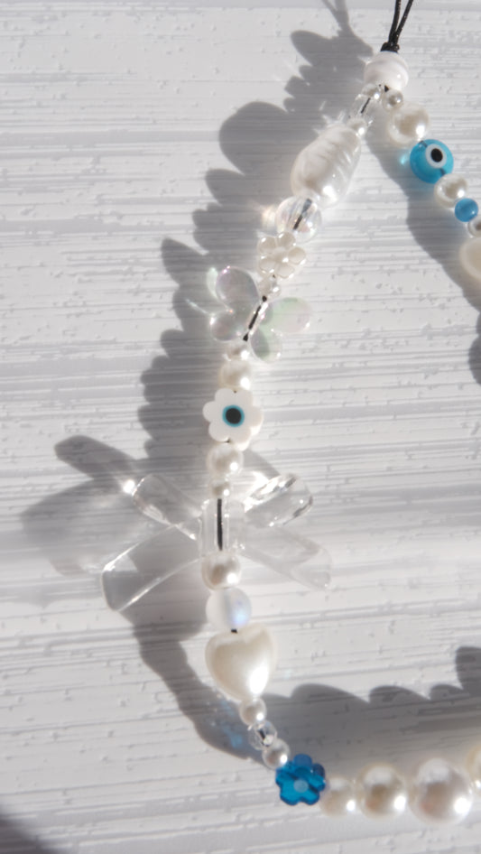 White Beaded Phone Strap