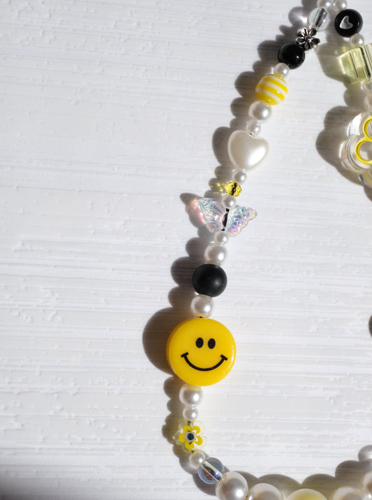 Yellow Smiley Face Phone Strap