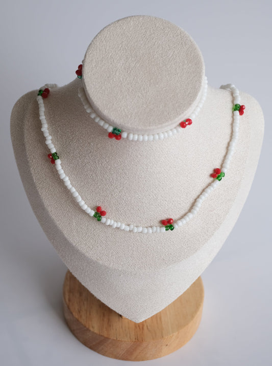 White Cherry Beaded Necklace and Bracelet Set