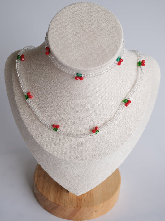 Clear Cherry Beaded Necklace and Bracelet Set